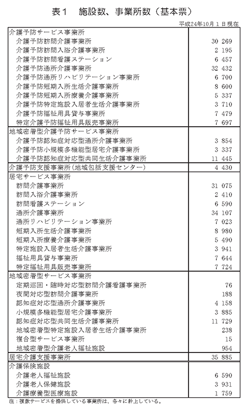 <図1>介護サービス事業者数(出典:平成24年度 介護保険事業状況報告(年報)のポイント/厚生労働省)