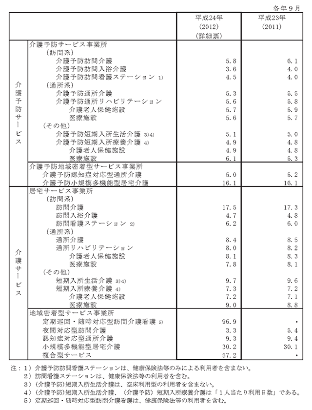 <図2>利用者一人当たりの一ヶ月の利用回数(出典:平成24年度 介護保険事業状況報告(年報)のポイント/厚生労働省)